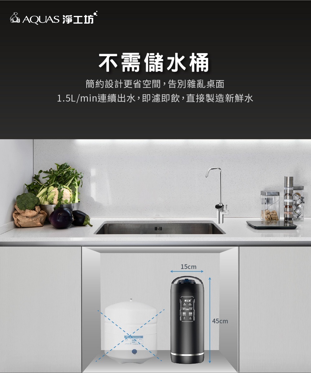 ․不需儲水桶,1.5L/min大出水量,即濾即飲不用等
